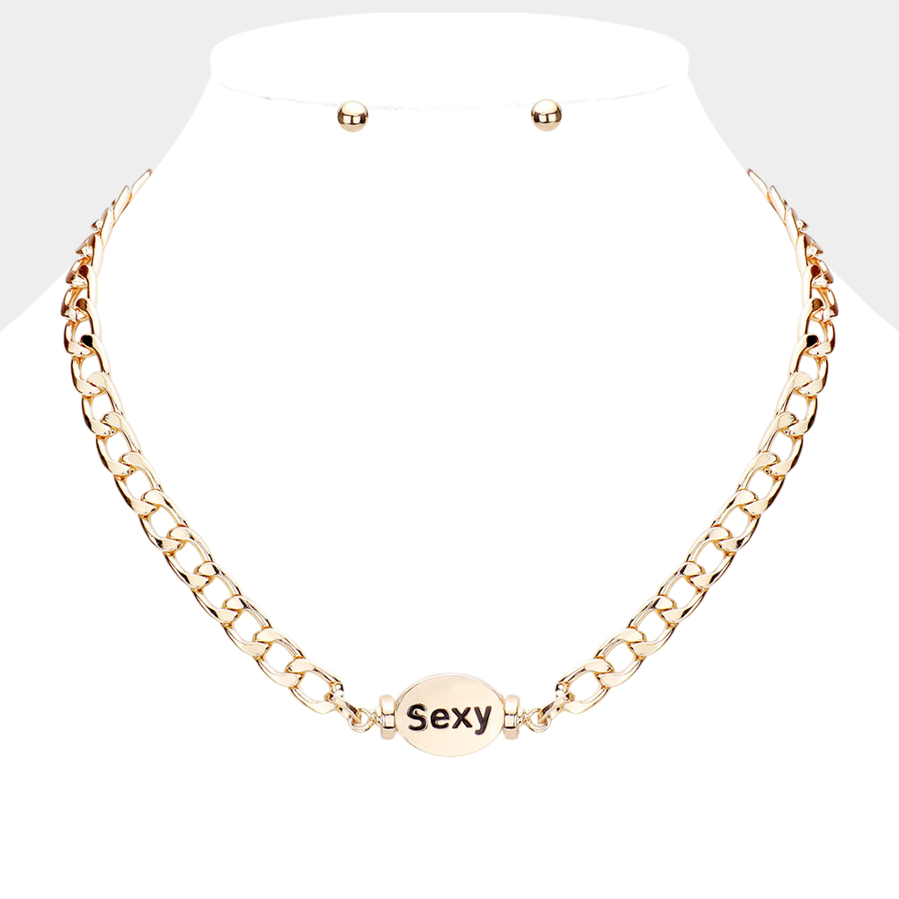 SEXY Metal Oval Message Pendant Necklace