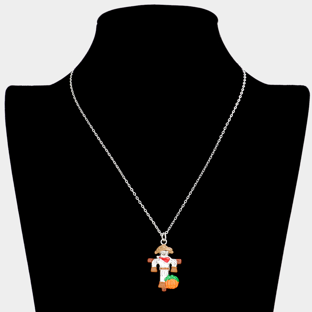 Silver Plated Scarecrow Pumpkin Pendant Necklace