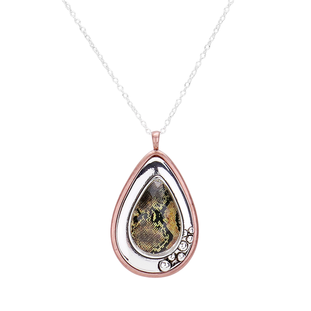 Snake Skin Print Centered Teardrop Metal Pendant Necklace