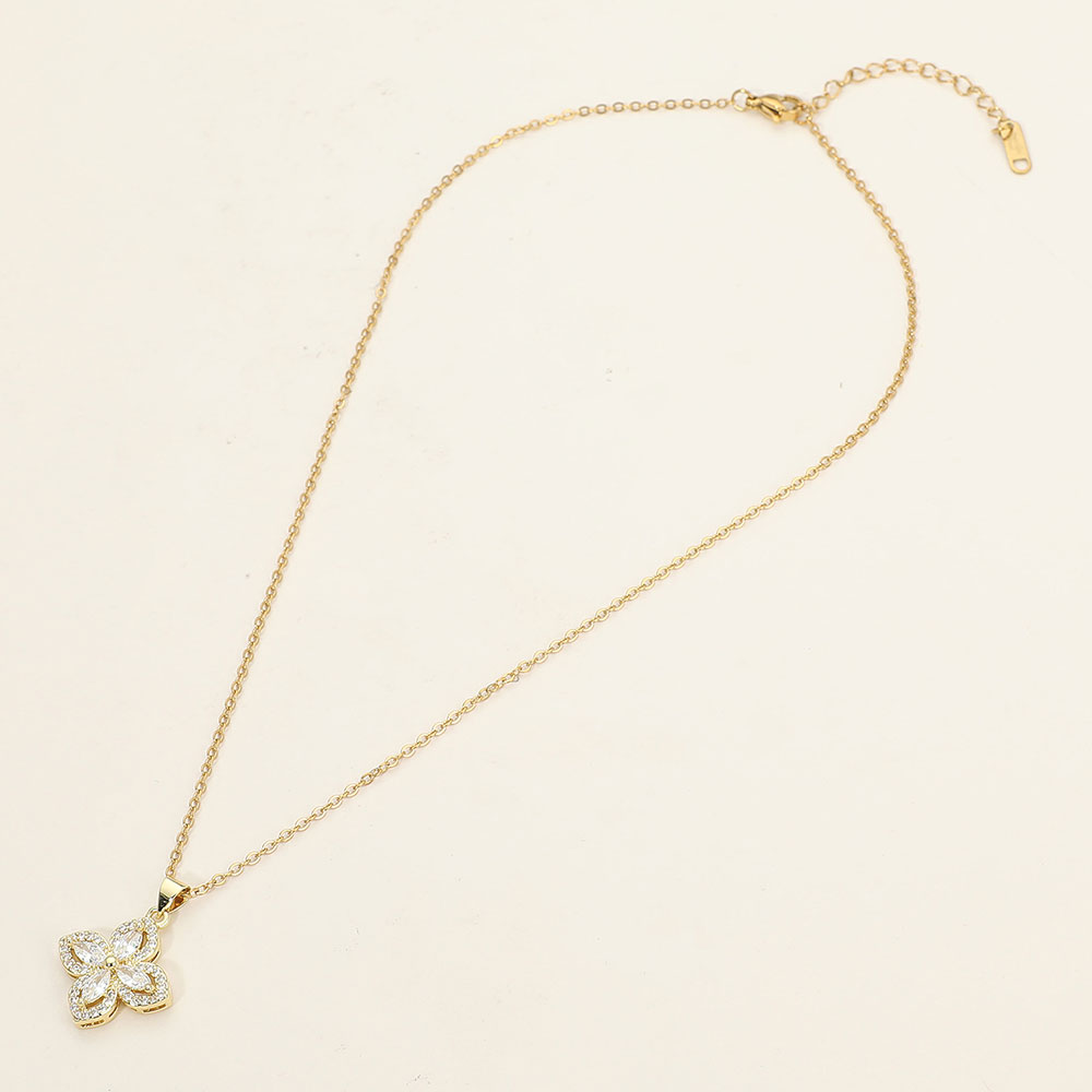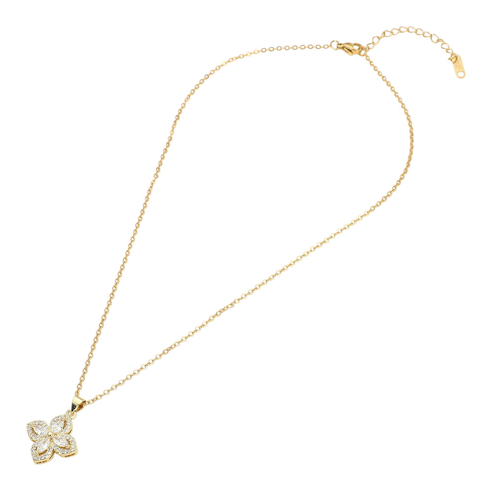 Stainless Steel CZ Flower Pendant Necklace Stainless Steel CZ Flower Pendant Necklace Stainless Steel CZ Flower Pendant Necklace