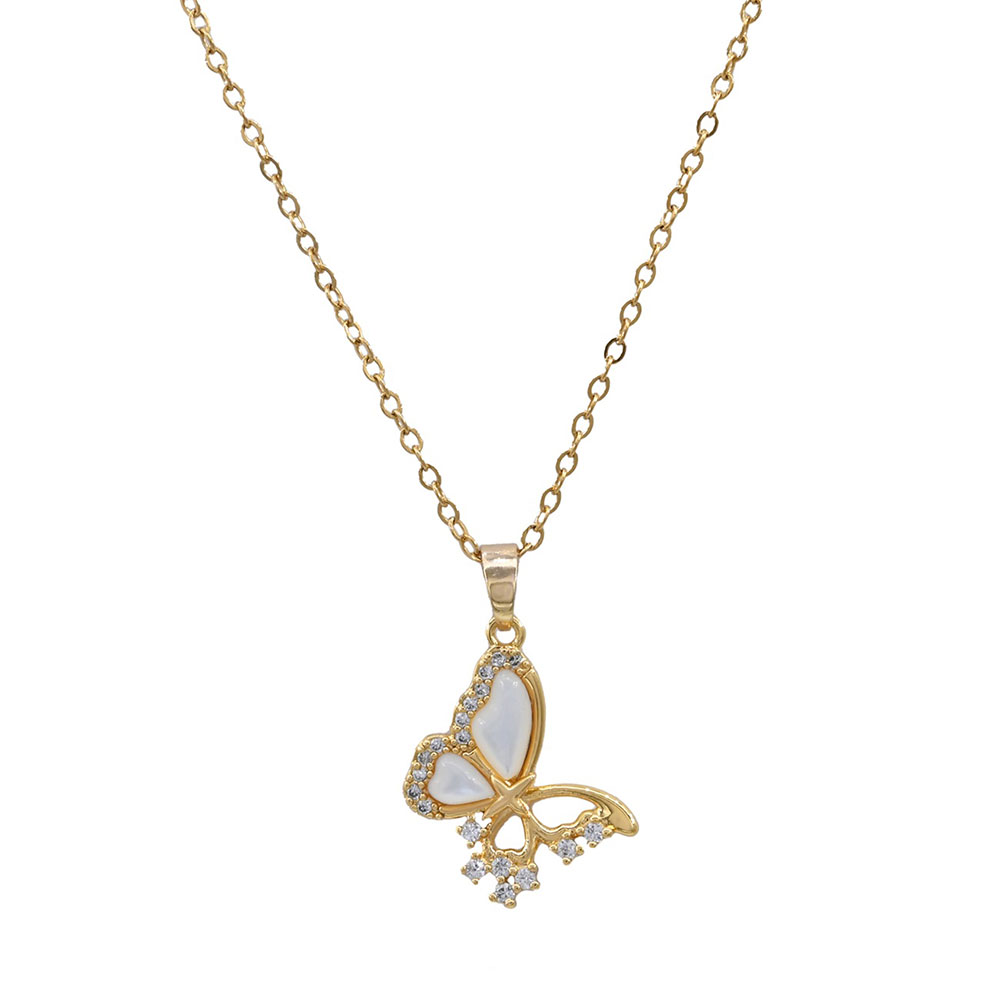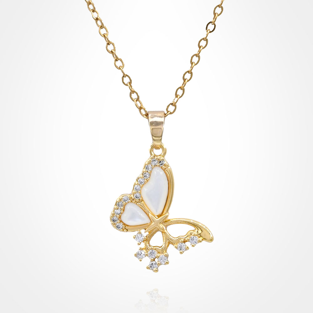 Details • Necklace Size : 16" + 2" L • Pendant Size : 0.6" X 1" • Elegant butterfly pendant necklace featuring shimmering crystal accents for a graceful and feminine touch. Perfect for adding a hint of charm to any outfit or gifting to someone who loves delicate and symbolic jewelry. • CZ Cubic Zirconia • Lead and Nickel Compliant • Stainless Steel