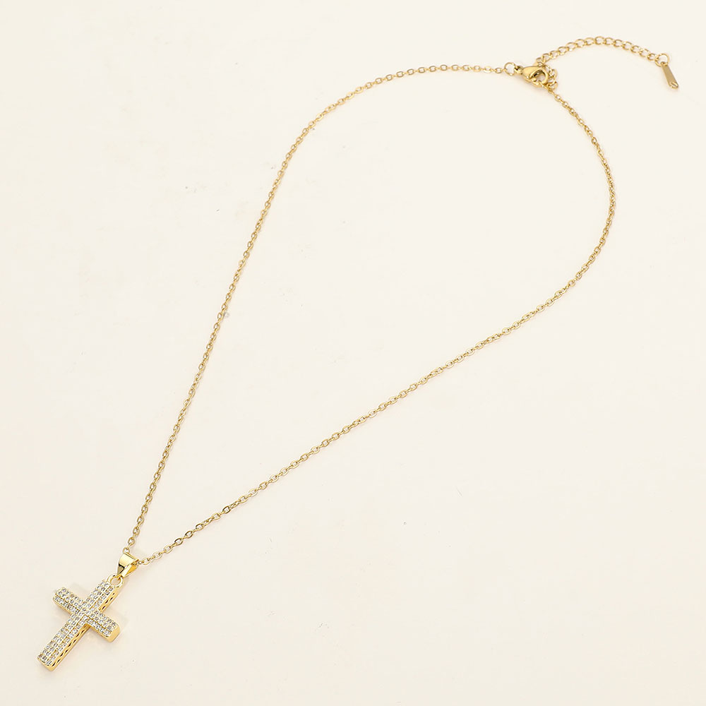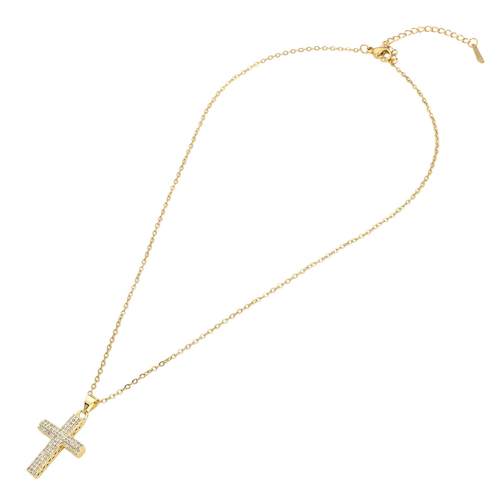 Details • Necklace Size : 15.5" + 2" L • Pendant Size : 0.7" X 1.25" • CZ Stone pave cross pendant necklace designed for everyday wear and meaningful gifting. Features a detailed cross charm with sparkling accents on a classic chain, offering timeless appeal. Ideal for boutiques, faith-inspired collections, layering styles, and customers seeking symbolic jewelry that blends elegance with versatile, daily styling. • CZ Cubic Zirconia • Stainless Steel
