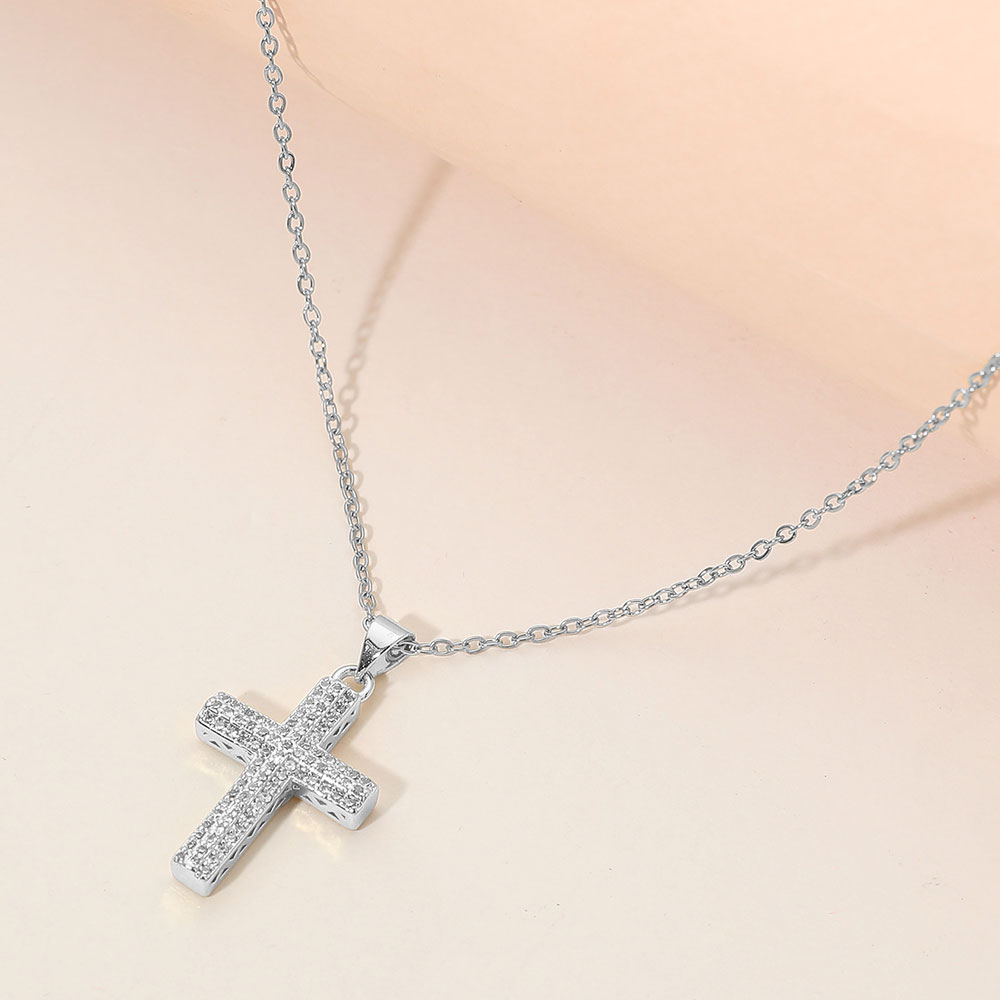 Details • Necklace Size : 15.5" + 2" L • Pendant Size : 0.7" X 1.25" • CZ Stone pave cross pendant necklace designed for everyday wear and meaningful gifting. Features a detailed cross charm with sparkling accents on a classic chain, offering timeless appeal. Ideal for boutiques, faith-inspired collections, layering styles, and customers seeking symbolic jewelry that blends elegance with versatile, daily styling. • CZ Cubic Zirconia • Stainless Steel