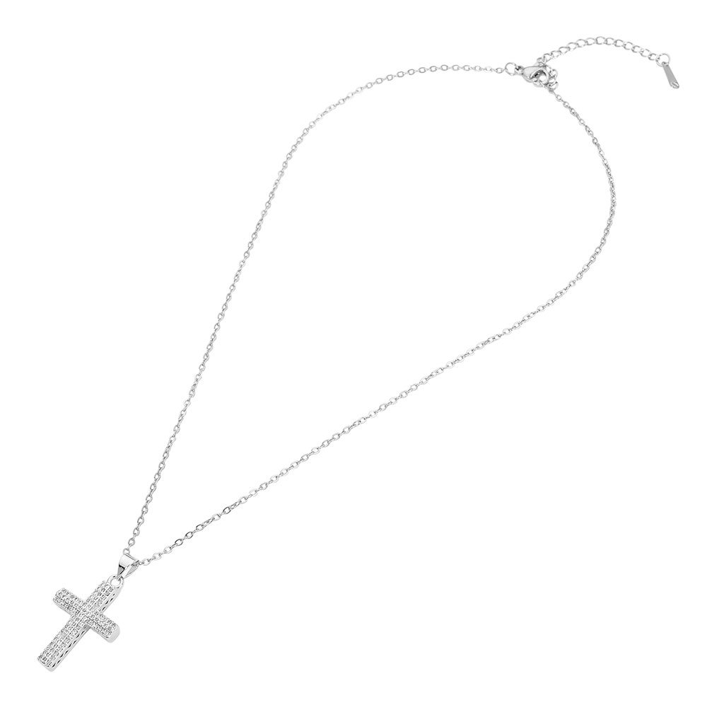 Stainless Steel CZ Stone Paved Cross Pendant Necklace