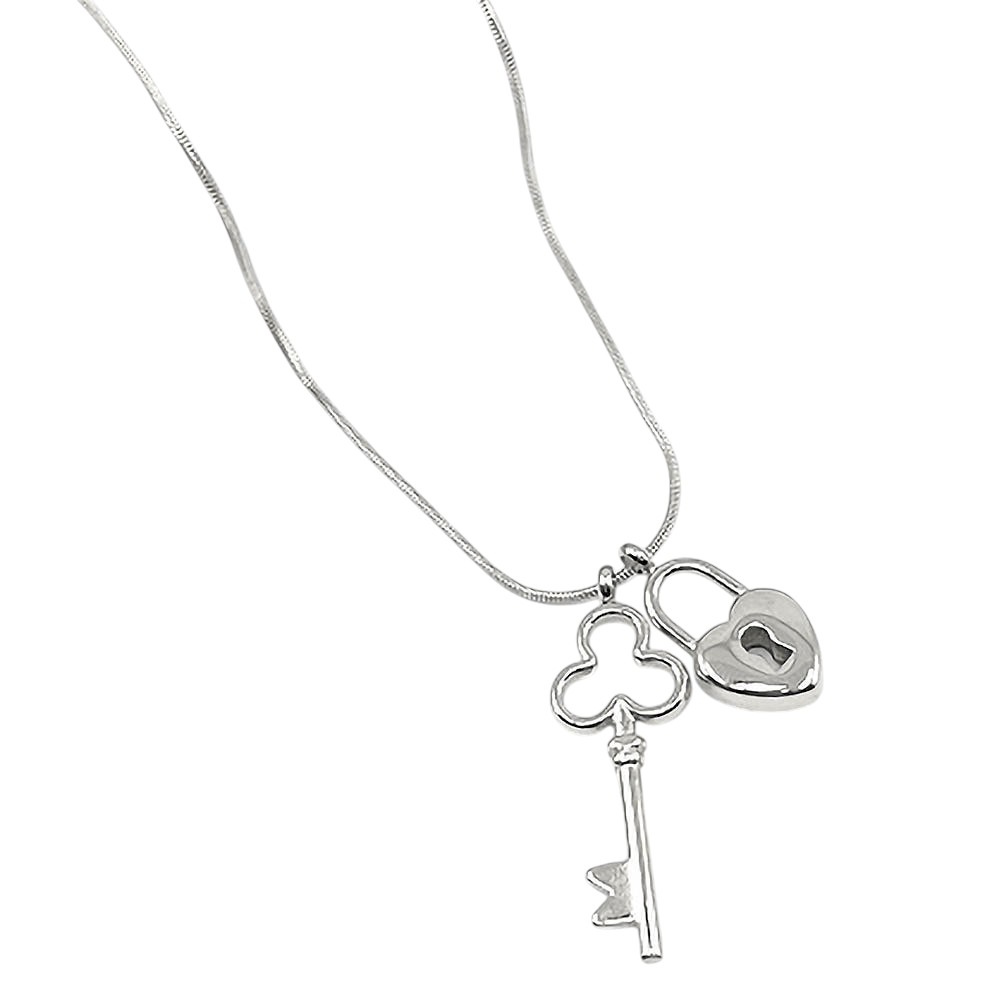 Stainless Steel Heart Lock Clover Key Pendant Necklace Stainless Steel Heart Lock Clover Key Pendant Necklace Stainless Steel Heart Lock Clover Key Pendant Necklace