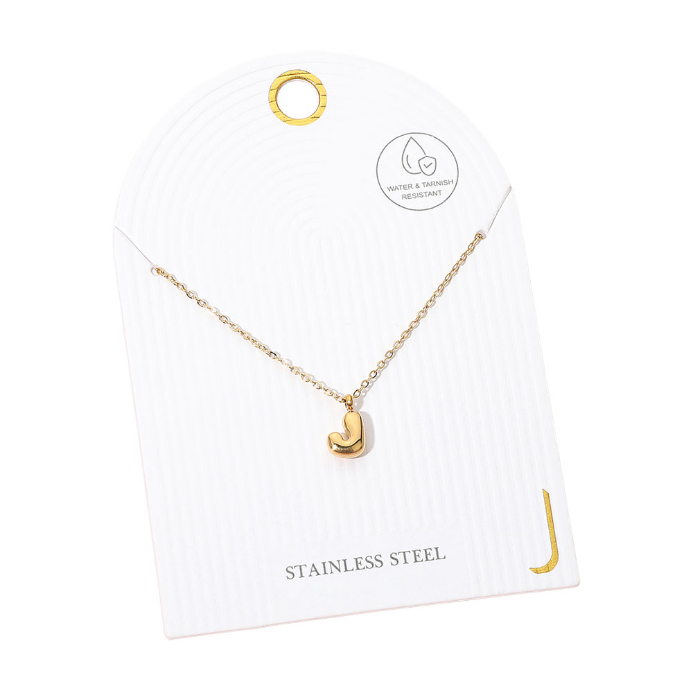 • Chic stainless steel necklace featuring a minimalist initial monogram pendant. Designed for everyday wear, this water and tarnish resistant piece adds a personal touch and effortless elegance to any outfit.