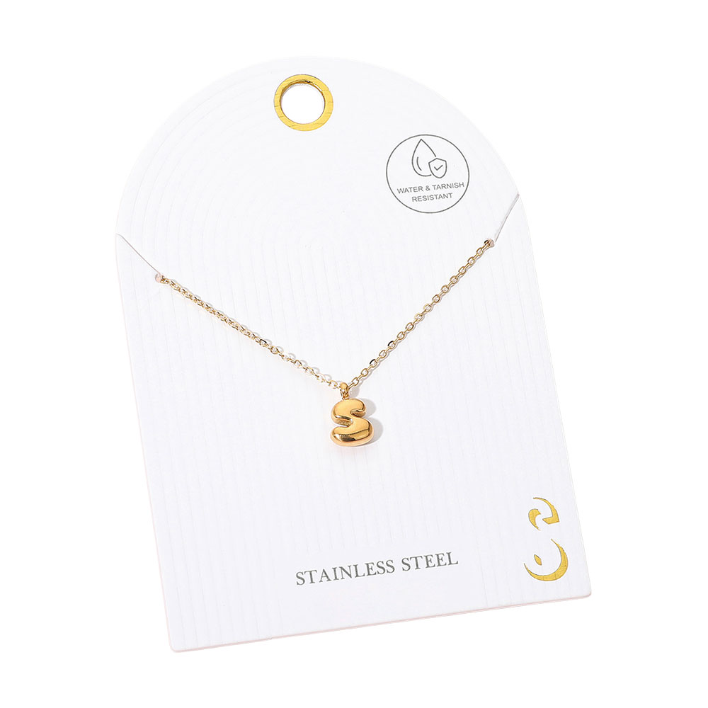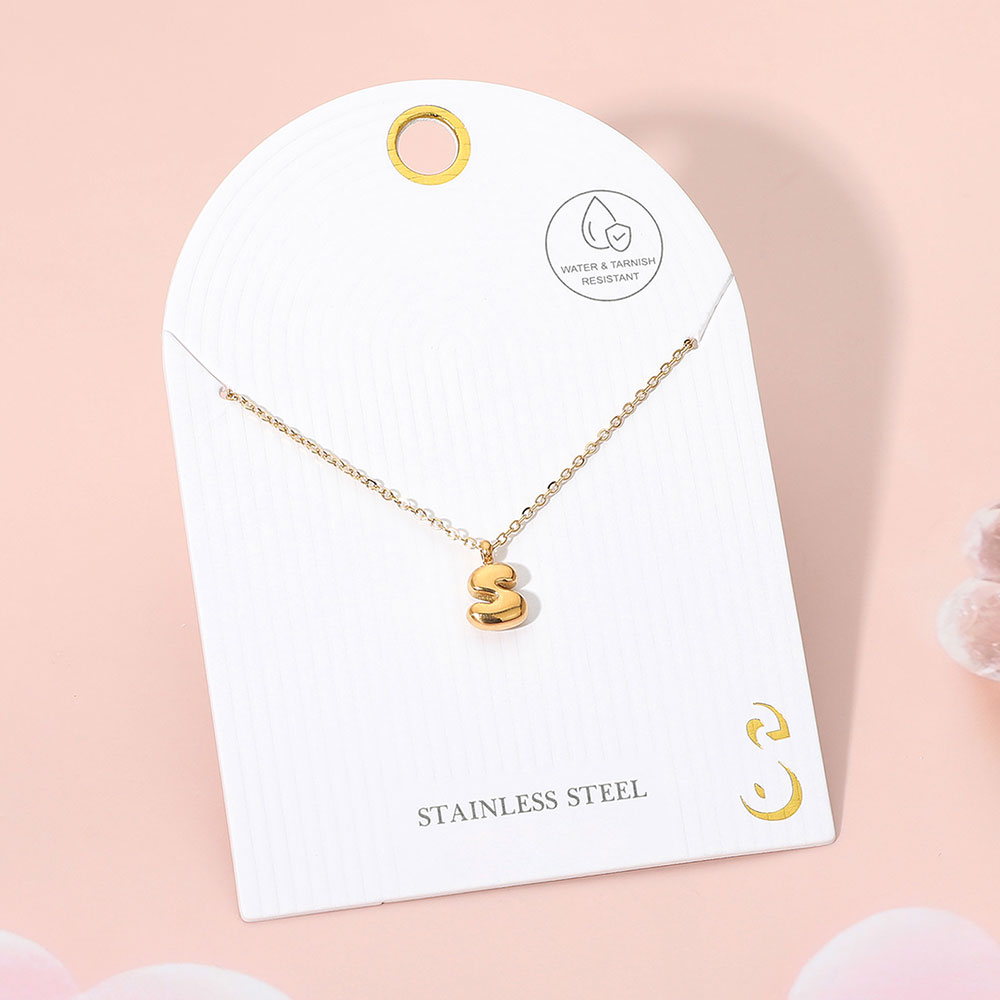 Details • Necklace Size : 18" L • Pendant Size : 0.3" L • Chic stainless steel necklace featuring a minimalist initial monogram pendant. Designed for everyday wear, this water and tarnish resistant piece adds a personal touch and effortless elegance to any outfit. • Stainless Steel