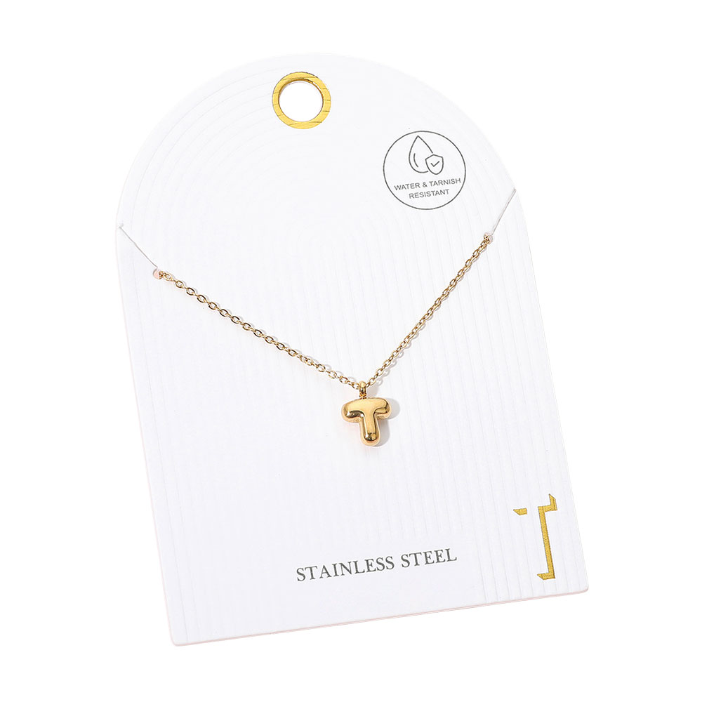 • Chic stainless steel necklace featuring a minimalist initial monogram pendant. Designed for everyday wear, this water and tarnish resistant piece adds a personal touch and effortless elegance to any outfit.