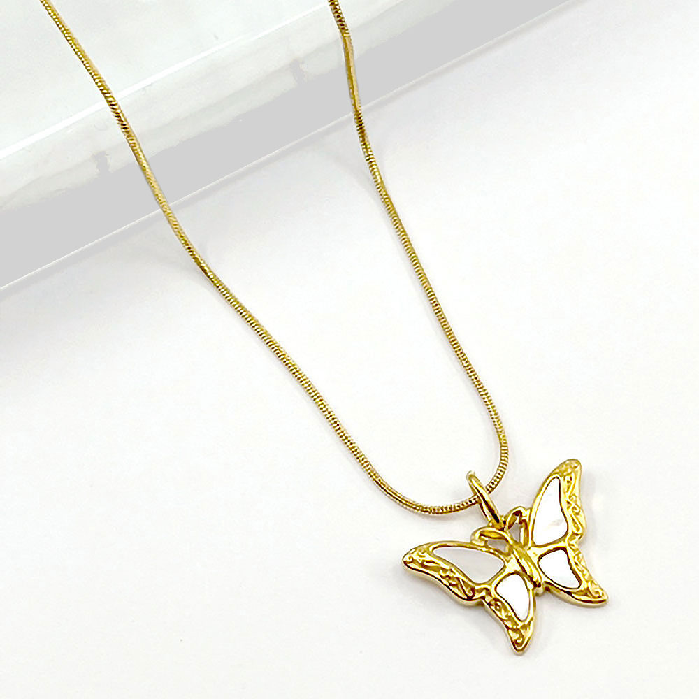 Details • Necklace Size : 16" + 2" L • Pendant Size : 0.8" X 0.6" • Elegant stainless steel necklace showcasing a beautifully detailed butterfly pendant on a sleek chain. A graceful symbol of transformation and beauty, ideal for everyday wear or as a thoughtful, meaningful gift. • Stainless Steel