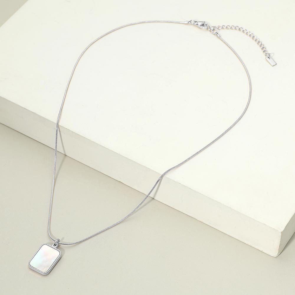 Details • Necklace Size : 16" + 2" L • Pendant Size : 0.6" X 0.5" • This stainless steel necklace showcases a refined rectangular pendant framed in a sleek finish. Its timeless and minimal design makes it perfect for layering or wearing solo, adding a touch of sophistication and everyday elegance to both casual and formal ensembles. • Stainless Steel