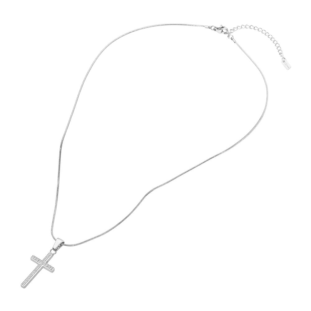 Details • Necklace Size : 16" + 2" • Pendant Size : 0.6" X 1.4" • This stainless steel necklace features a classic cross pendant adorned with subtle detailing for a timeless look. Designed for durability and everyday wear, it blends elegance with simplicity, making it an ideal accessory for layering or as a meaningful standalone statement piece. • Stainless Steel