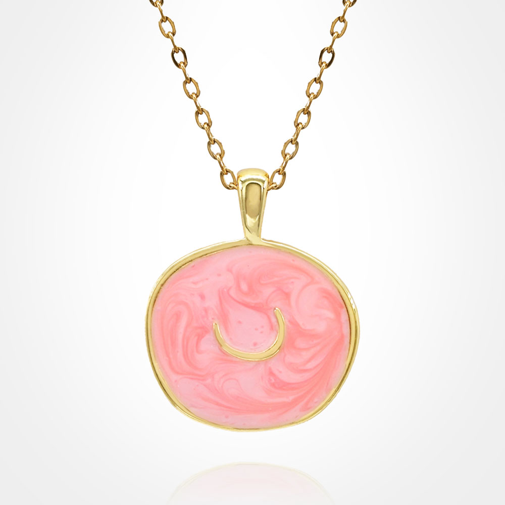 Stainless Steel Swirl Enamel Tilted Crescent Embossed Pendant Necklace