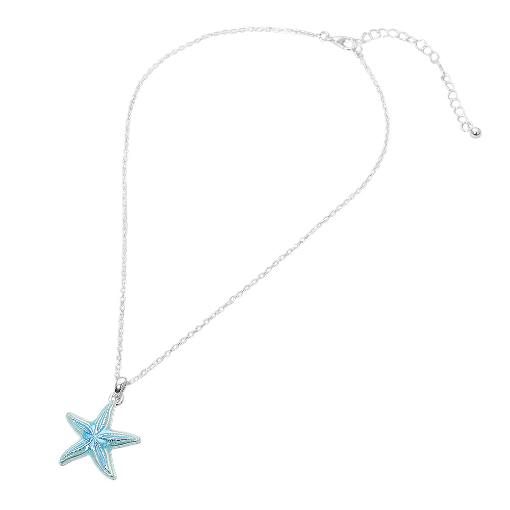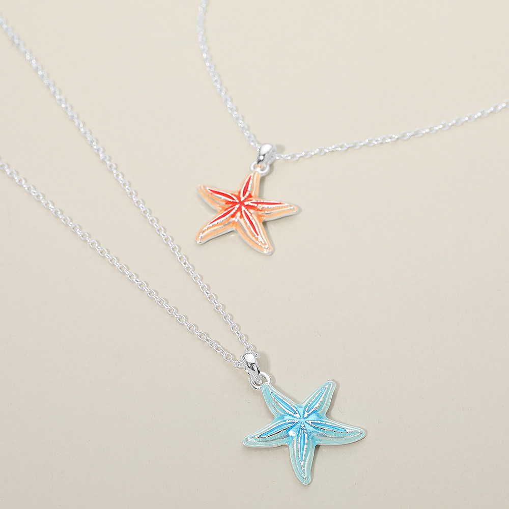 • Starfish charm pendant necklace featuring a sleek ocean-inspired design that adds a coastal accent to everyday outfits. Ideal for beach boutiques, gift shops, and seasonal displays, this necklace pairs easily with casual or vacation looks and offers strong appeal for customers who love nautical and nature-themed jewelry.