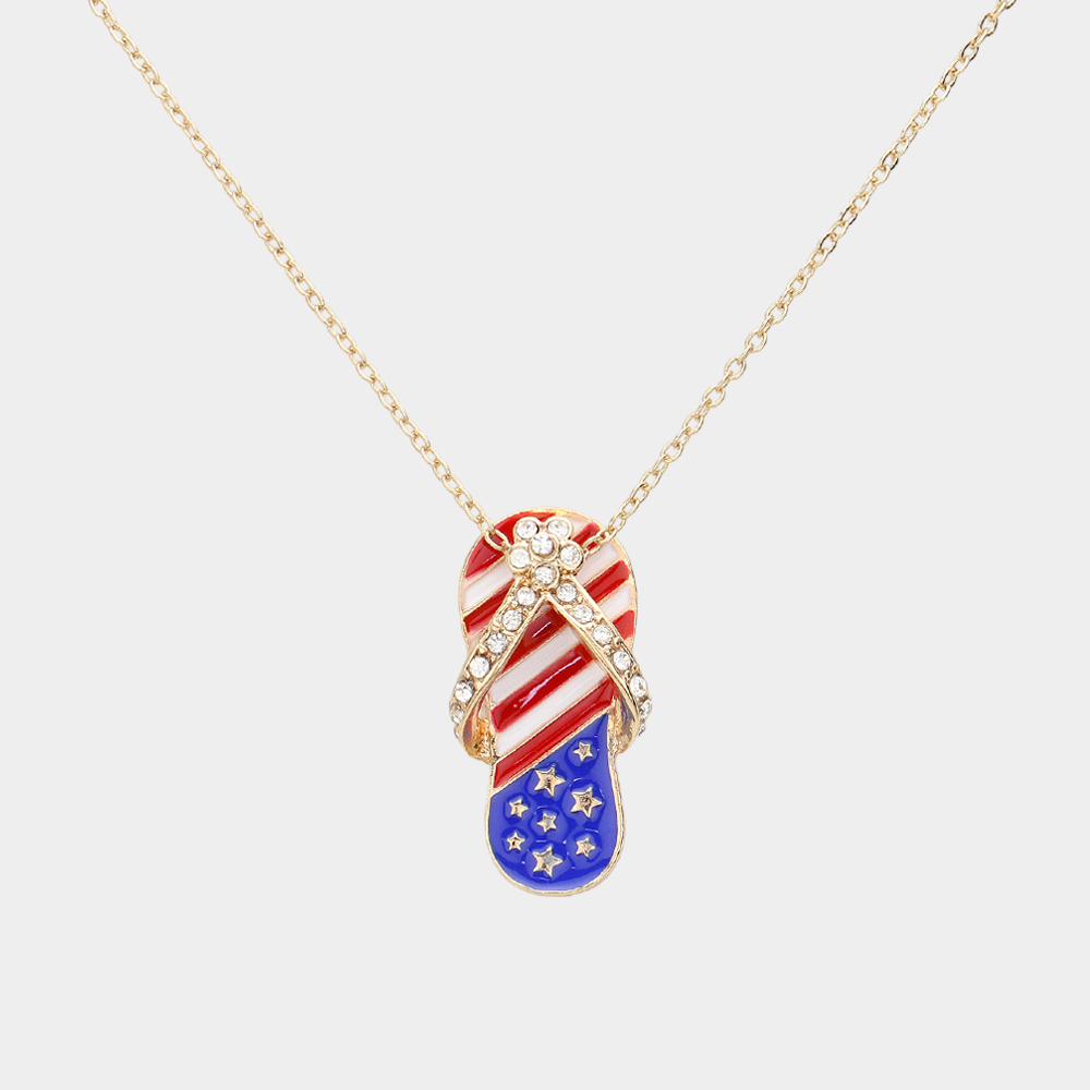 Stone Paved American USA Flag Flip Flops Pendant Necklace