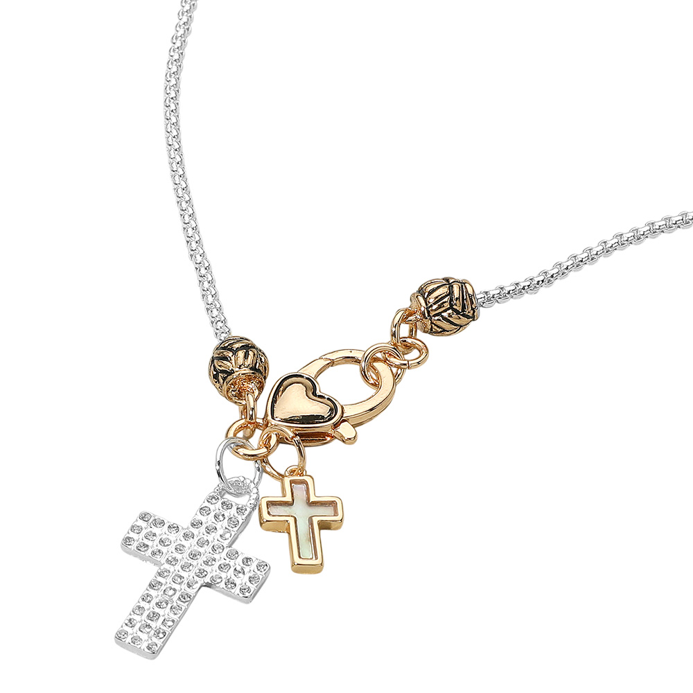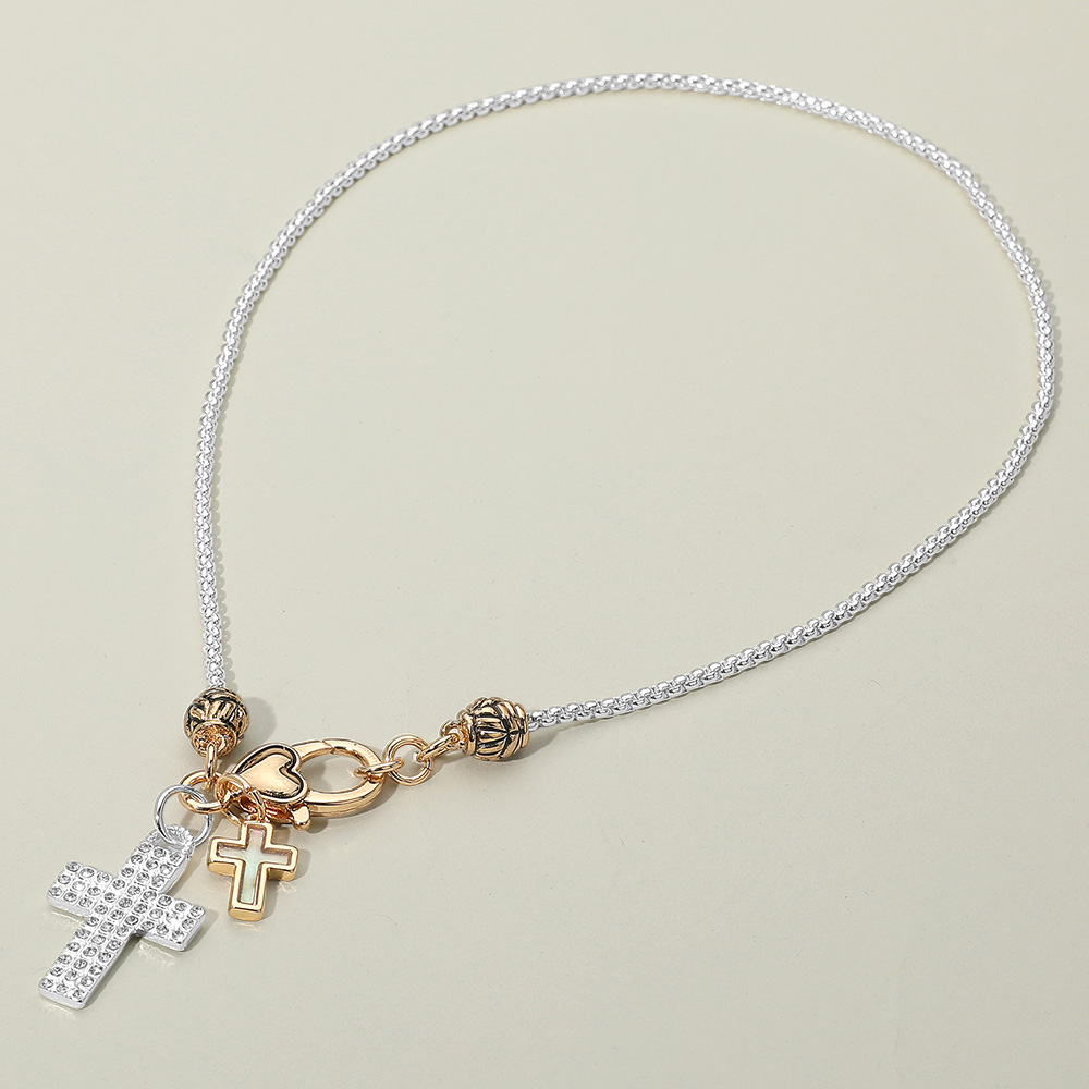 Details • Necklace Size : 16" + 0.75" L • Pendant Size : 1.5" L • Elevate your look with this multi-charm necklace featuring a crystal-studded cross and heart accents for a chic, symbolic design. Perfect for layering or wearing solo, its timeless style adds elegance and meaningful detail to any outfit, from casual to dressy. • Lead and Nickel Compliant
