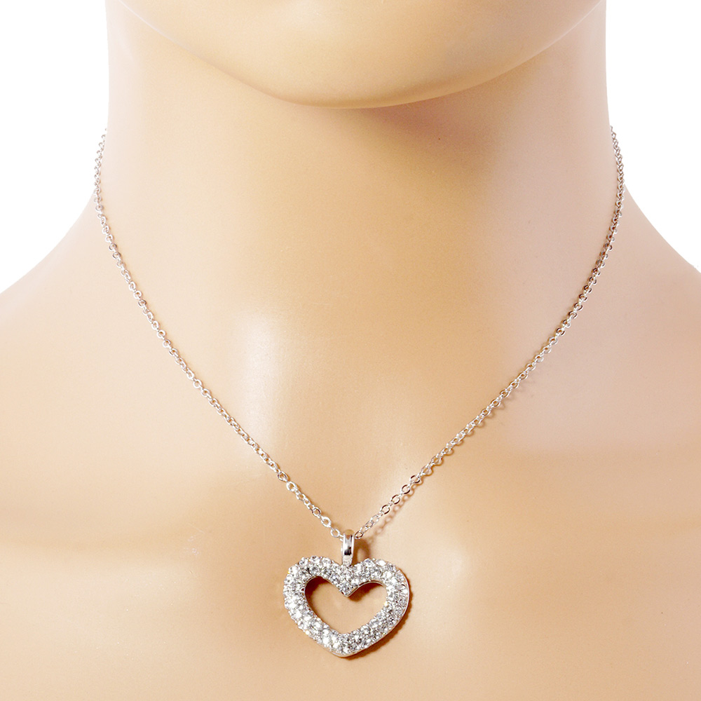 White Gold Dipped Double Heart Pendant Bubble Chain Necklace