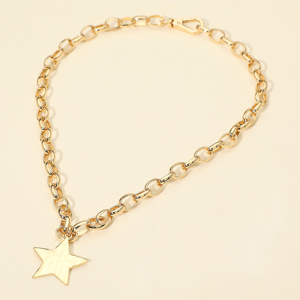 Details • Necklace Size : 16" + 0.75" L • Pendant Size : 1" X 1.2" • Shine bright with this star charm link chain necklace. Designed with a polished star pendant on a bold chain, this piece captures modern elegance and playful sophistication—perfect for layering or wearing solo to elevate both casual and chic looks effortlessly. • Lead and Nickel Compliant