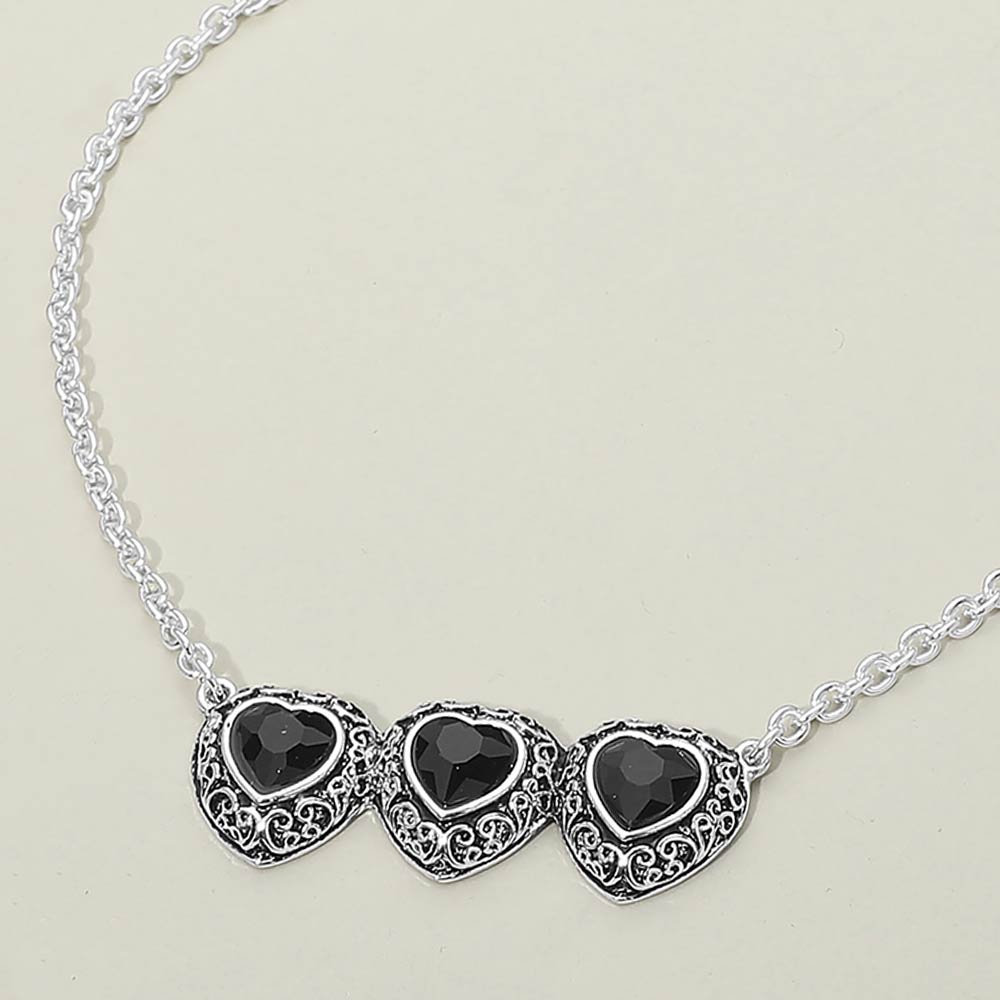 • Showcase romantic style with this triple heart pendant necklace featuring detailed framed accents on a delicate chain. A charming statement piece ideal for everyday wear or special occasions, offering graceful shine, balanced design, and comfortable lightweight appeal.