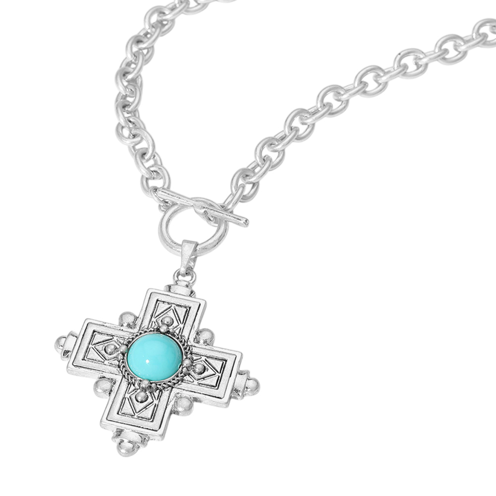 Details • Necklace Size : 16" + 3.5" L • Pendant Size : 2" X 2.75" • Discover a vintage-inspired cross pendant necklace featuring a striking chain and ornate detailing. The bold pendant design creates a timeless statement piece, perfect for layering or wearing solo to elevate any outfit with sophistication and charm. • Lead and Nickel Compliant