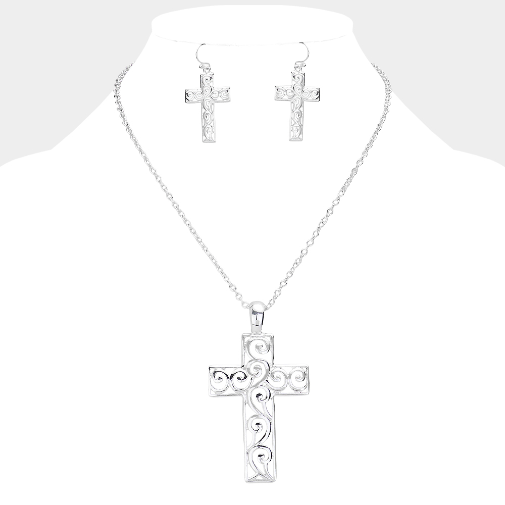 Metal Cross Pendant Accent Beaded Multi Strand Necklace