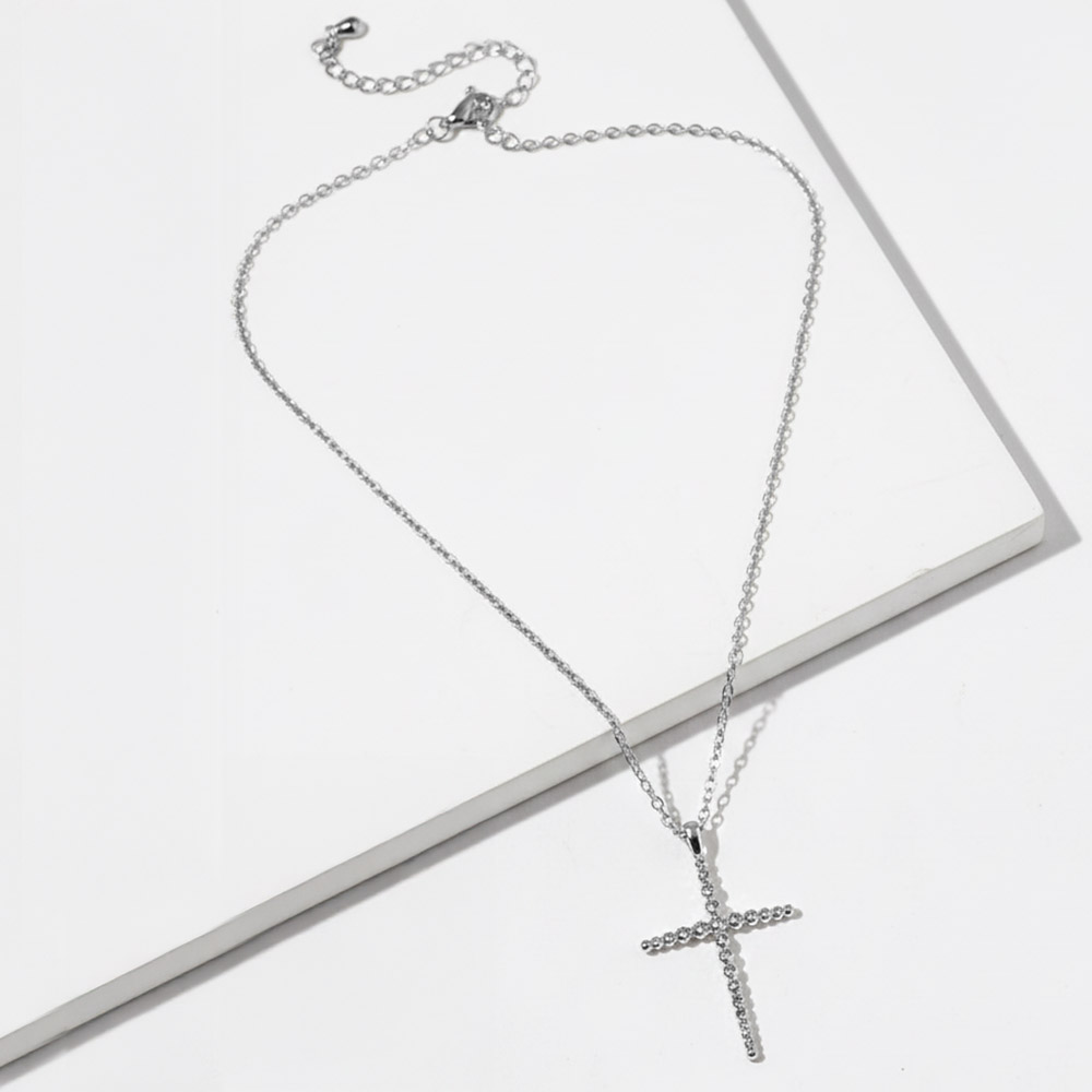 • This beaded cross pendant necklace features a clean, modern cross design with rounded bead detailing for subtle texture and shine. Lightweight and easy to style, it layers beautifully or stands alone as a meaningful everyday accent. Ideal for casual wear, gifting, and boutique collections seeking timeless symbolic jewelry.