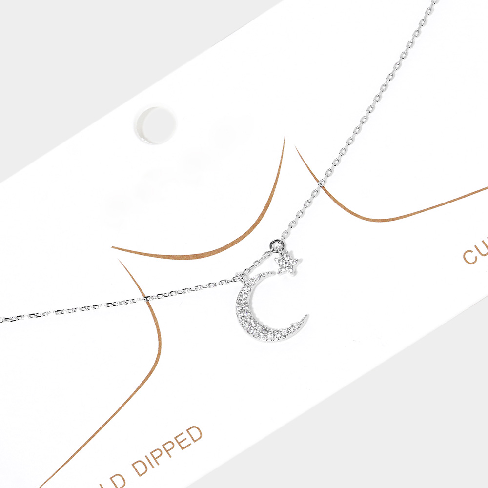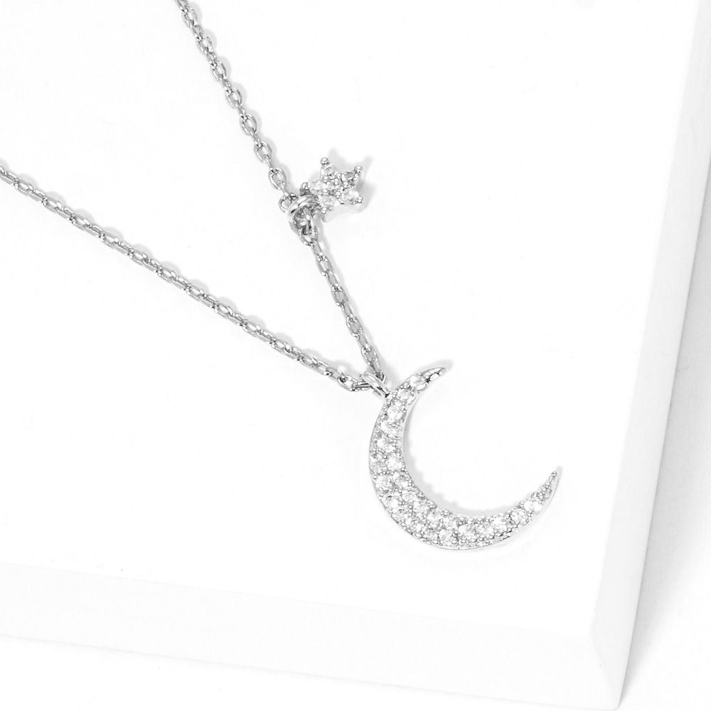 White Gold Dipped Cubic Zirconia Moon Star Pendant Necklace