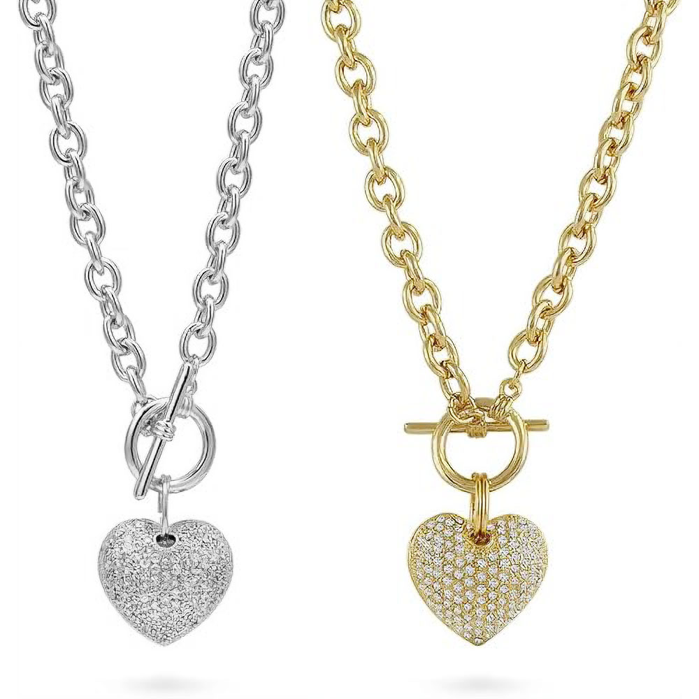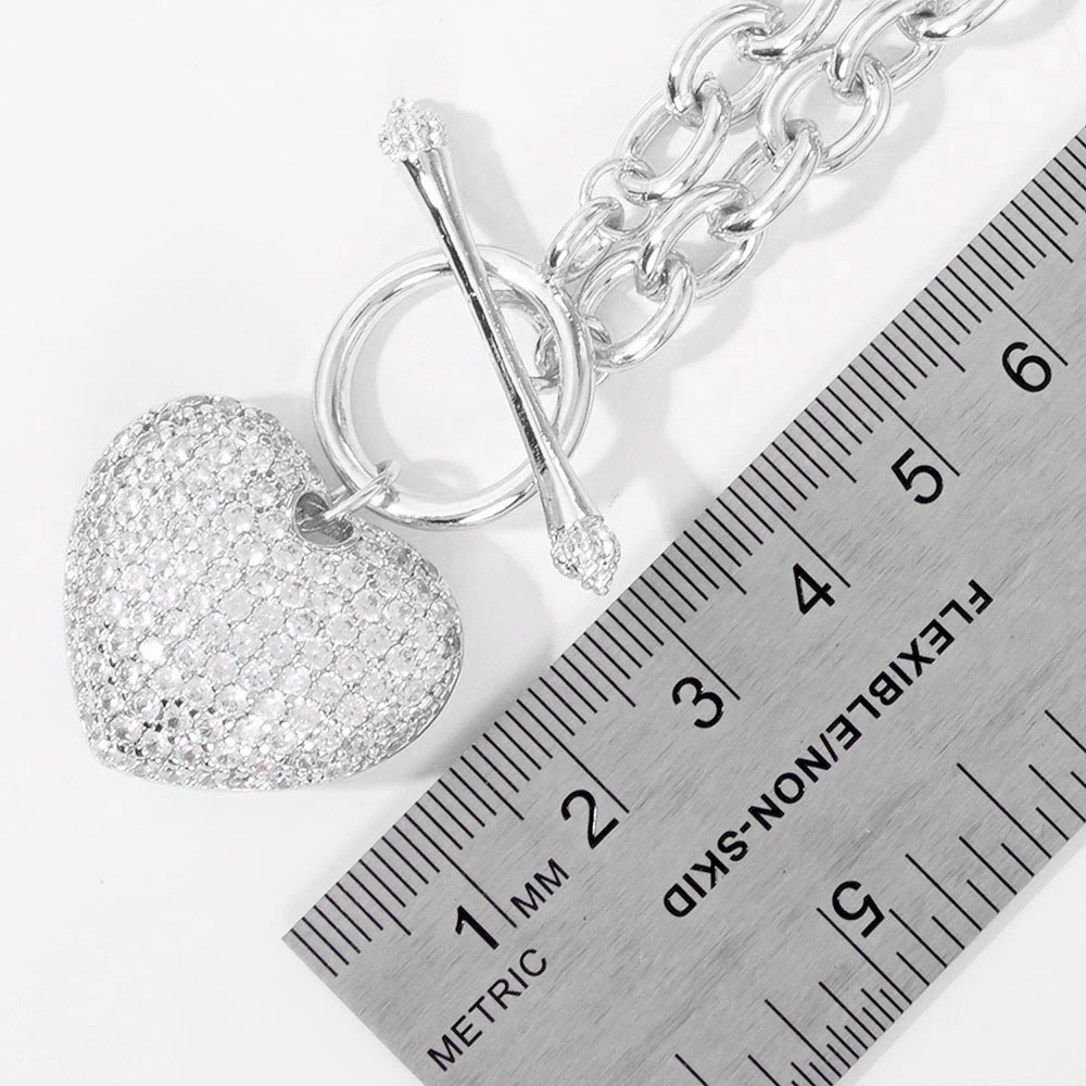 White Gold Dipped CZ Pave Heart Pendant Toggle Necklace White Gold Dipped CZ Pave Heart Pendant Toggle Necklace White Gold Dipped CZ Pave Heart Pendant Toggle Necklace White Gold Dipped CZ Pave Heart Pendant Toggle Necklace