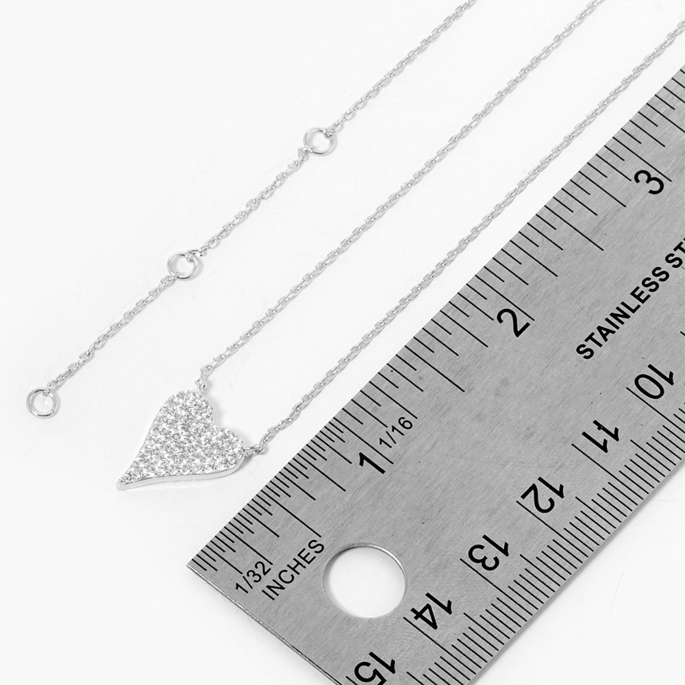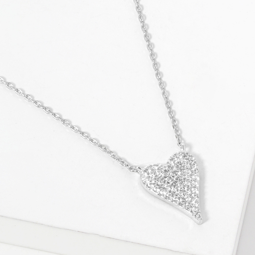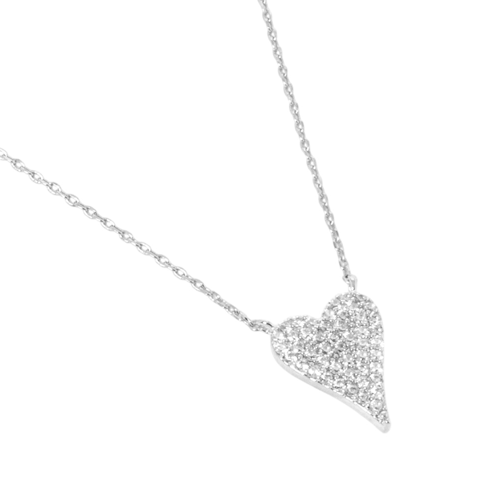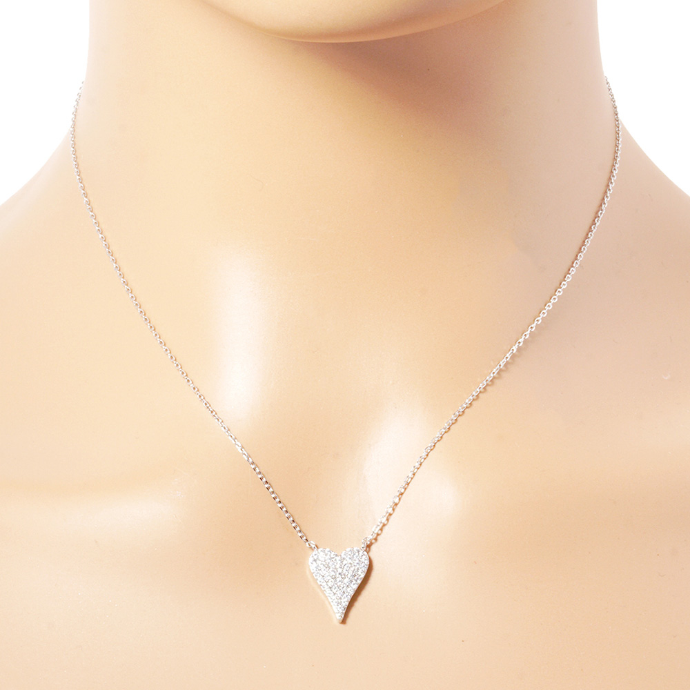 White Gold Dipped CZ Stone Paved Heart Pendant Necklace