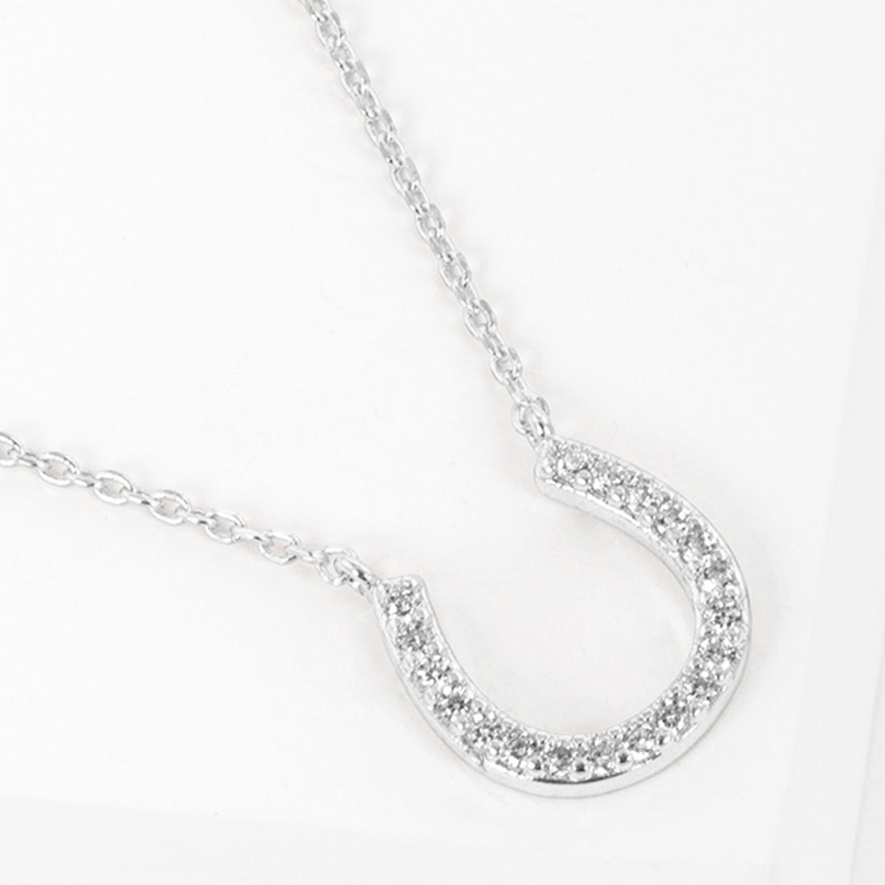 • Elegant horseshoe-shaped pendant necklace featuring a refined curved silhouette with sparkling accent details. Designed to symbolize luck and timeless style, this charm necklace is perfect for everyday wear, gifting, and boutique collections seeking classic symbolism with a modern, fashion-forward appeal.