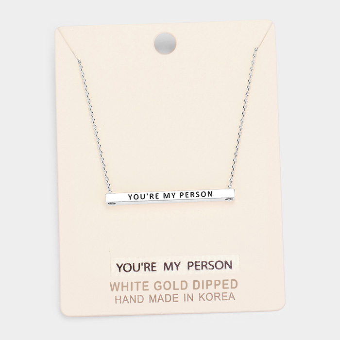 'You're My Person' Horizontal Metal Bar Pendant Necklace