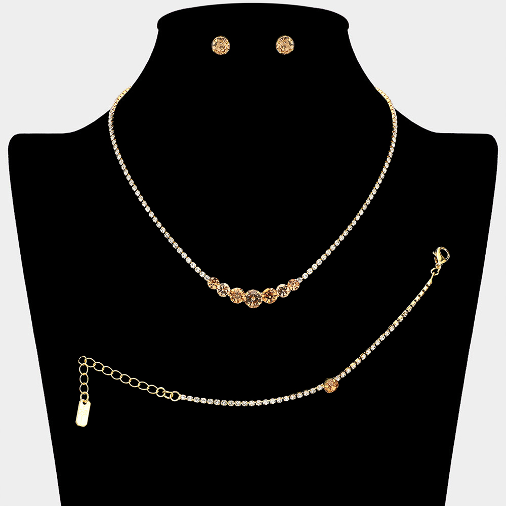 • Timeless matching necklace, stud earring, and bracelet set designed with a clean round stone centerpiece for effortless elegance. Ideal for weddings, formal events, parties, and everyday special occasion styling. A versatile set that delivers refined sparkle and coordinated sophistication.