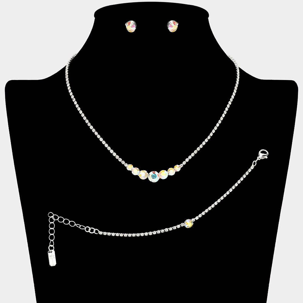 • Timeless matching necklace, stud earring, and bracelet set designed with a clean round stone centerpiece for effortless elegance. Ideal for weddings, formal events, parties, and everyday special occasion styling. A versatile set that delivers refined sparkle and coordinated sophistication.