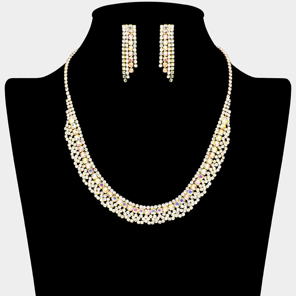 • Dazzle with timeless glamour in this Layered Sparkling Crystal Necklace and Earring Set. Designed with cascading rows of brilliant stones, it adds a luxurious radiance to any outfit—ideal for weddings, evening galas, and festive celebrations that call for effortless sophistication.
