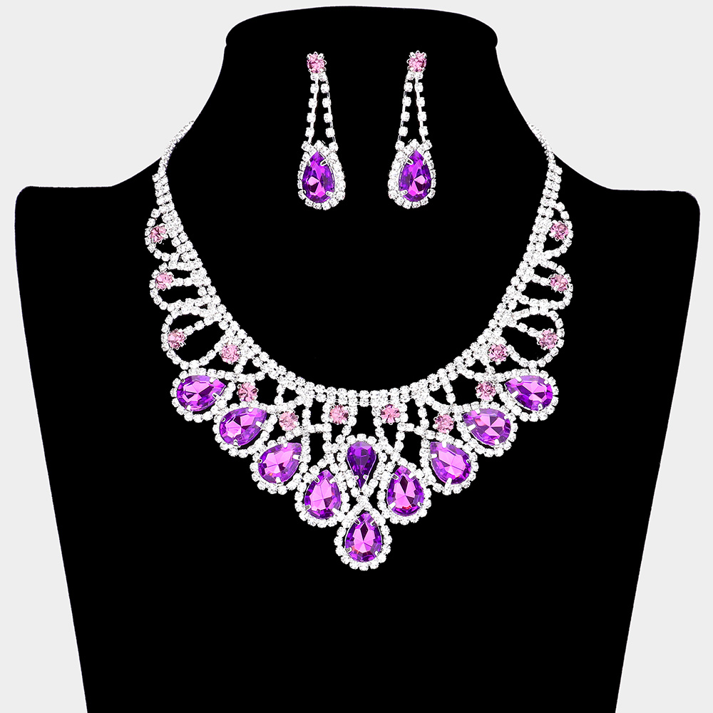 Teardrop Stone Accented Rhinestone Necklace