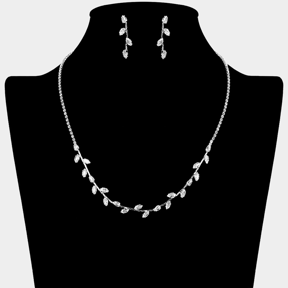CZ Marquise Stone Cluster Vine Rhinestone Paved Necklace
