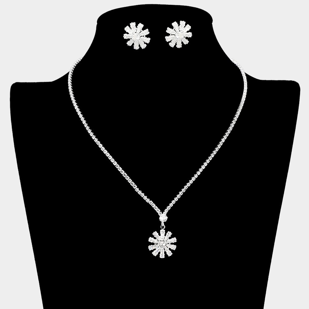 Details • Necklace Size : 15.5" + 4.25" L • Pendant Size : 0.75" X 0.75" • Earrings Size : 0.75" L • Enhance your elegance with this dazzling jewelry set featuring a radiant pendant necklace paired with matching crystal earrings. Perfect for weddings, parties, and evening events, it adds a refined sparkle that beautifully complements formal and special occasion attire. • CZ Cubic Zirconia • Lead and Nickel Compliant