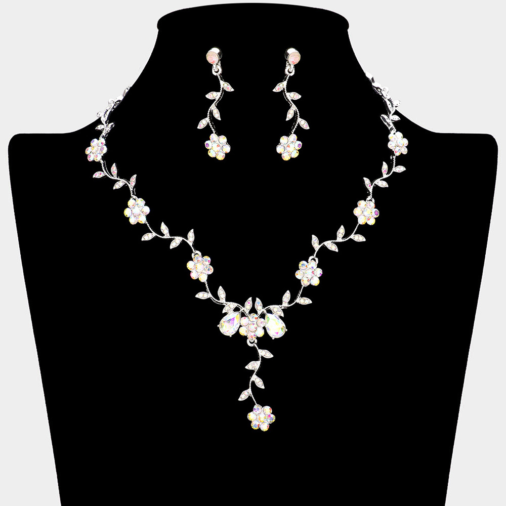 Flower Leaf Cluster Vine Rhinestone Necklace