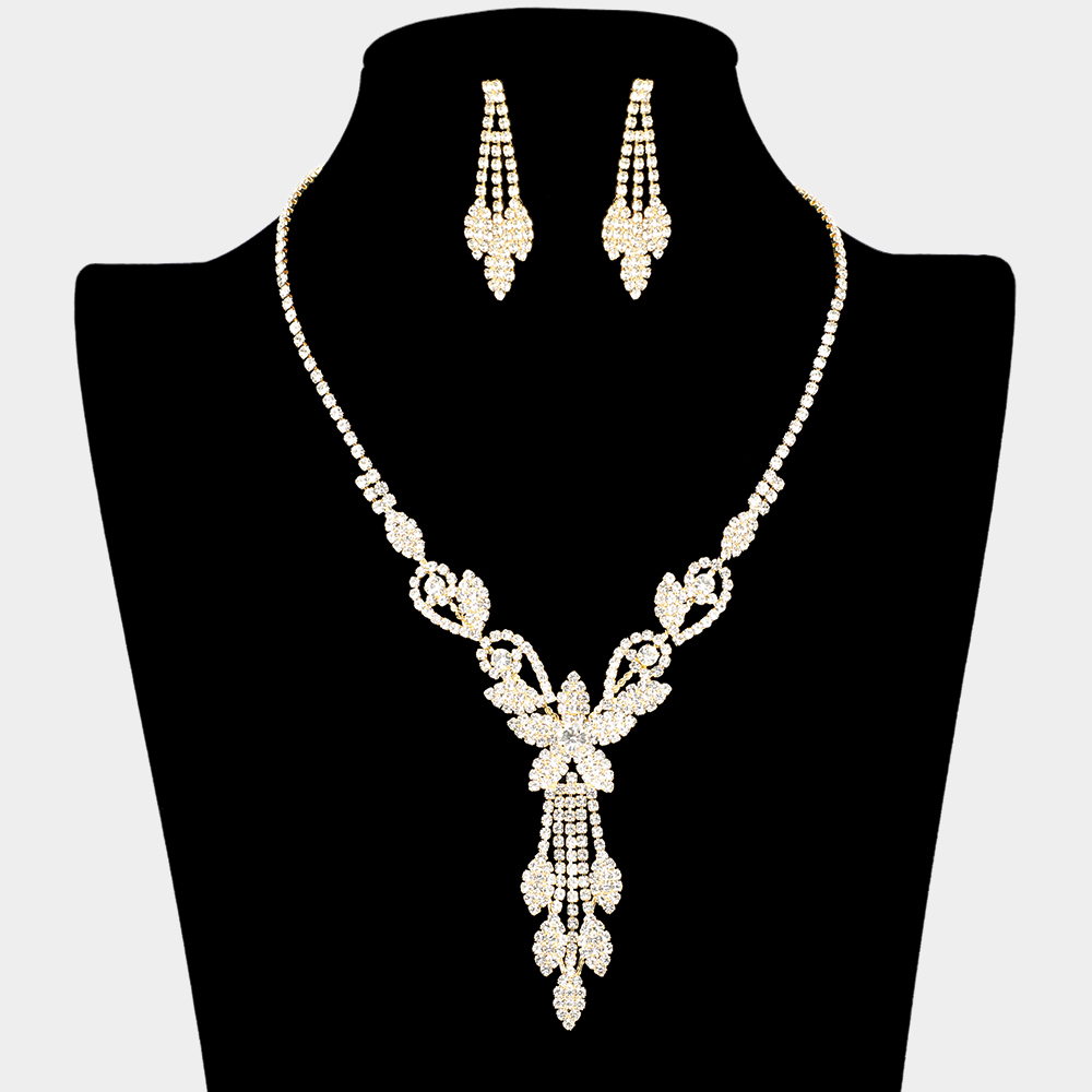 Stone Paved Butterfly Flower Pointed Disc Charm Pendant Necklace
