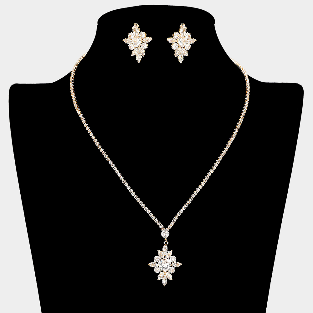 • Showcase timeless beauty with this refined jewelry set featuring a sparkling pendant necklace and matching earrings. Designed to brighten formal looks, it delivers a graceful shimmer that enhances special occasion outfits with a chic, polished finish.