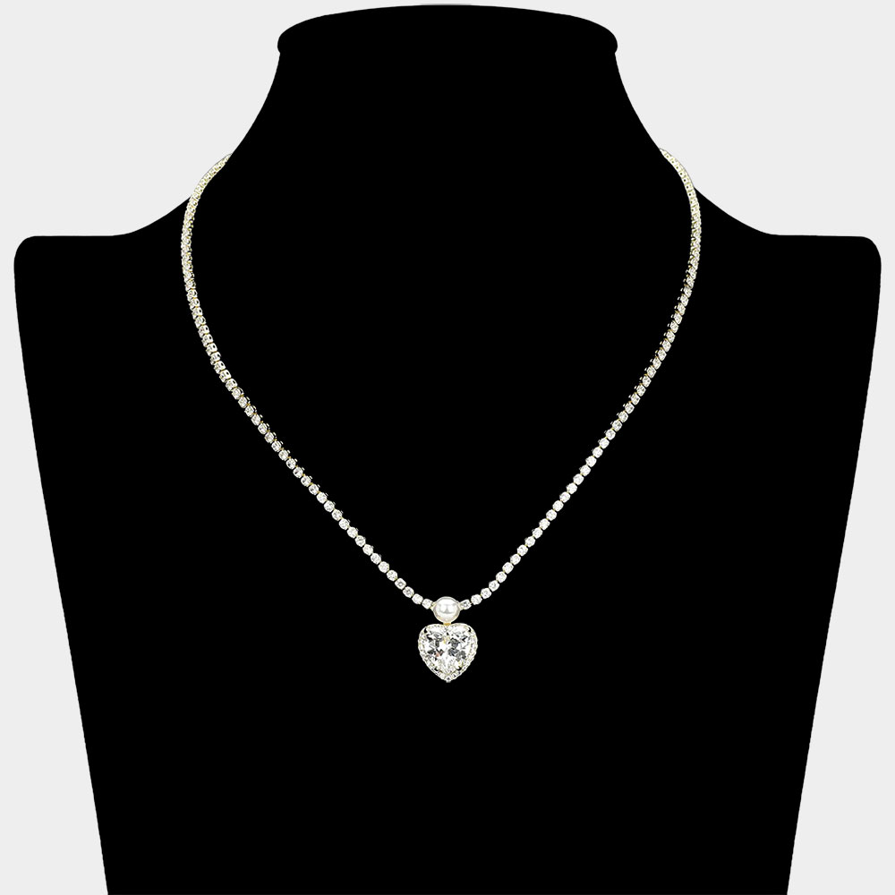 Heart CZ Stone Charm Drop Rhinestone Necklace