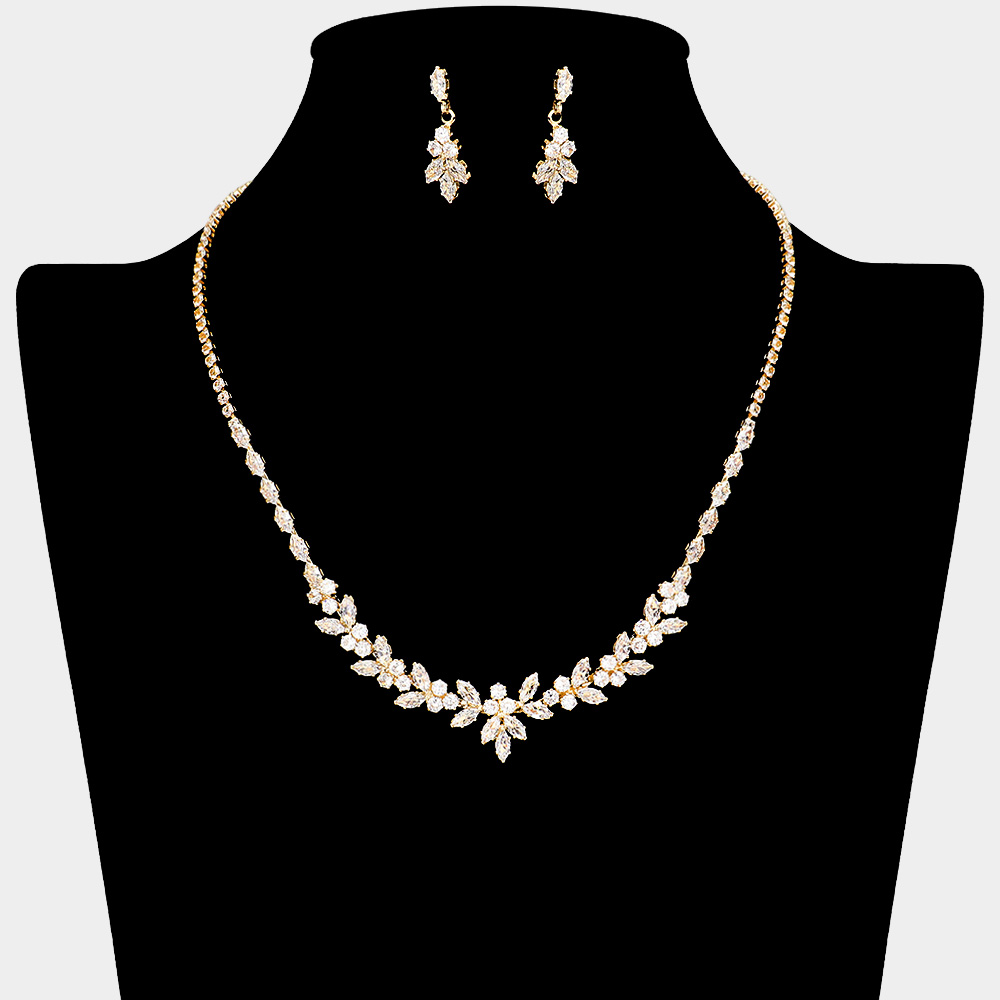 Leaf Vine CZ Stone Cluster Embellished Necklace