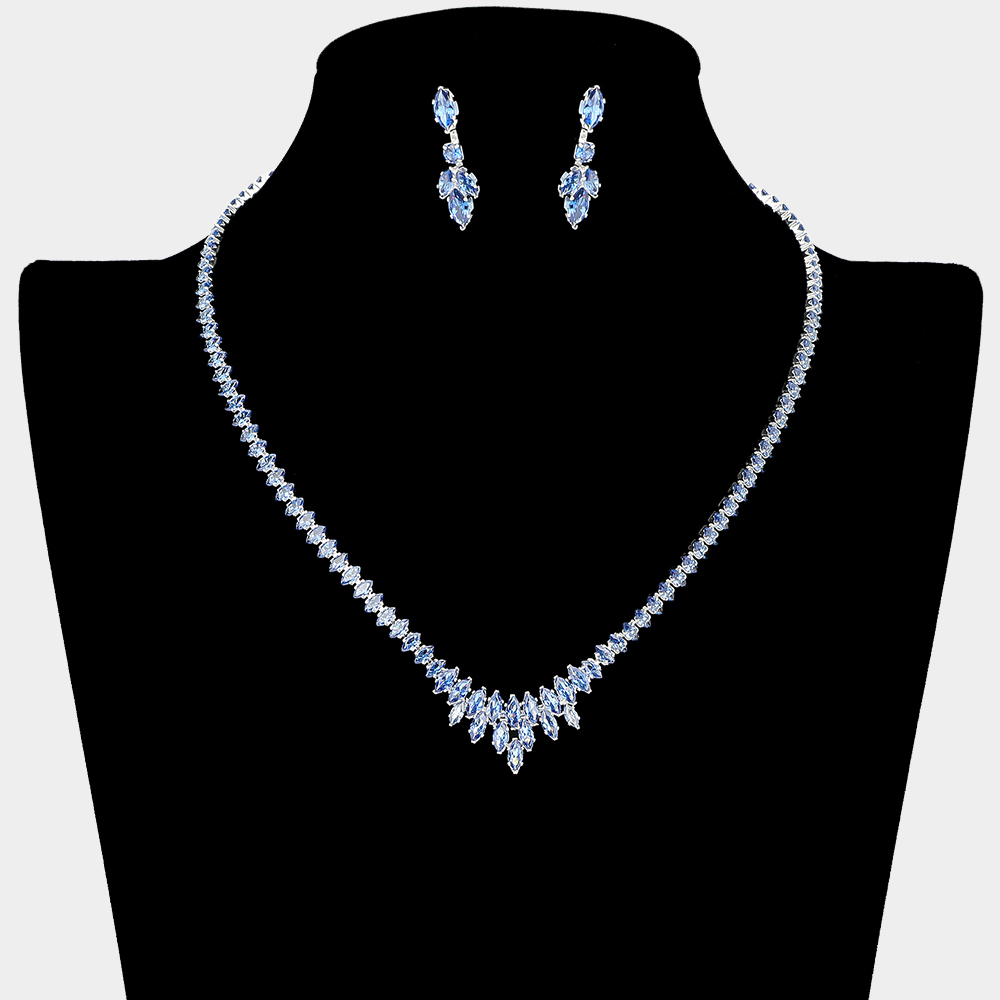 • Elegant necklace and earring set featuring a symmetrical marquise crystal design. Ideal for formal events, this set brings refined sparkle and timeless sophistication to any special occasion look.