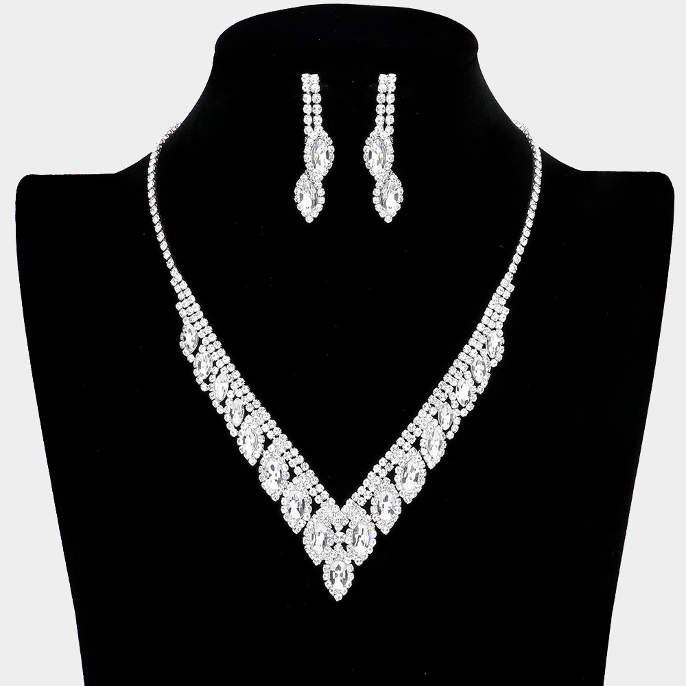 Marquise Stone Cluster Embellished Rhinestone Paved Necklace