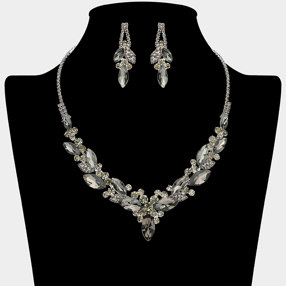 • Make a bold impression with this statement necklace and earring set featuring striking marquise and teardrop accents arranged in an elegant silhouette. Designed for formal events, evening wear, proms, and special celebrations, this coordinated set delivers eye-catching sparkle and confident, glamorous style.
