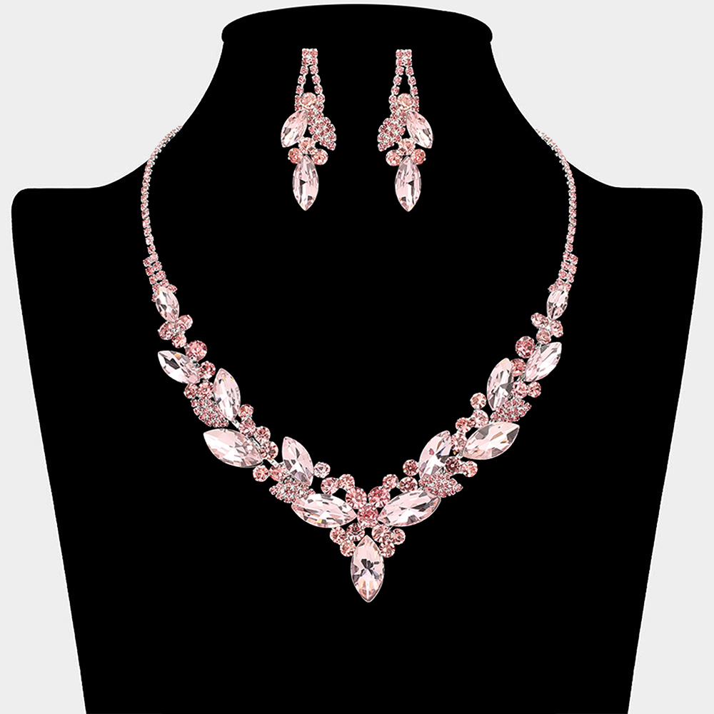 • Make a bold impression with this statement necklace and earring set featuring striking marquise and teardrop accents arranged in an elegant silhouette. Designed for formal events, evening wear, proms, and special celebrations, this coordinated set delivers eye-catching sparkle and confident, glamorous style.