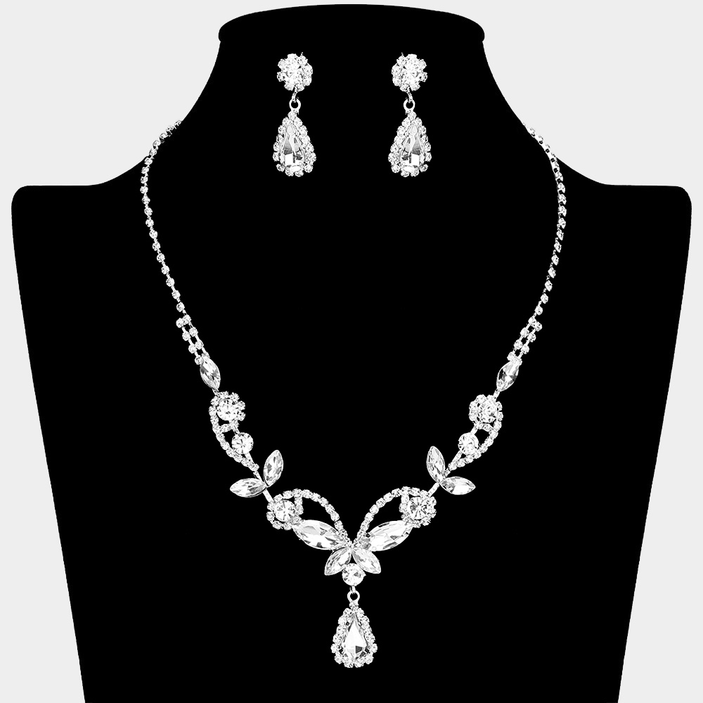 Marquise Stone Cluster Embellished Rhinestone Paved Necklace