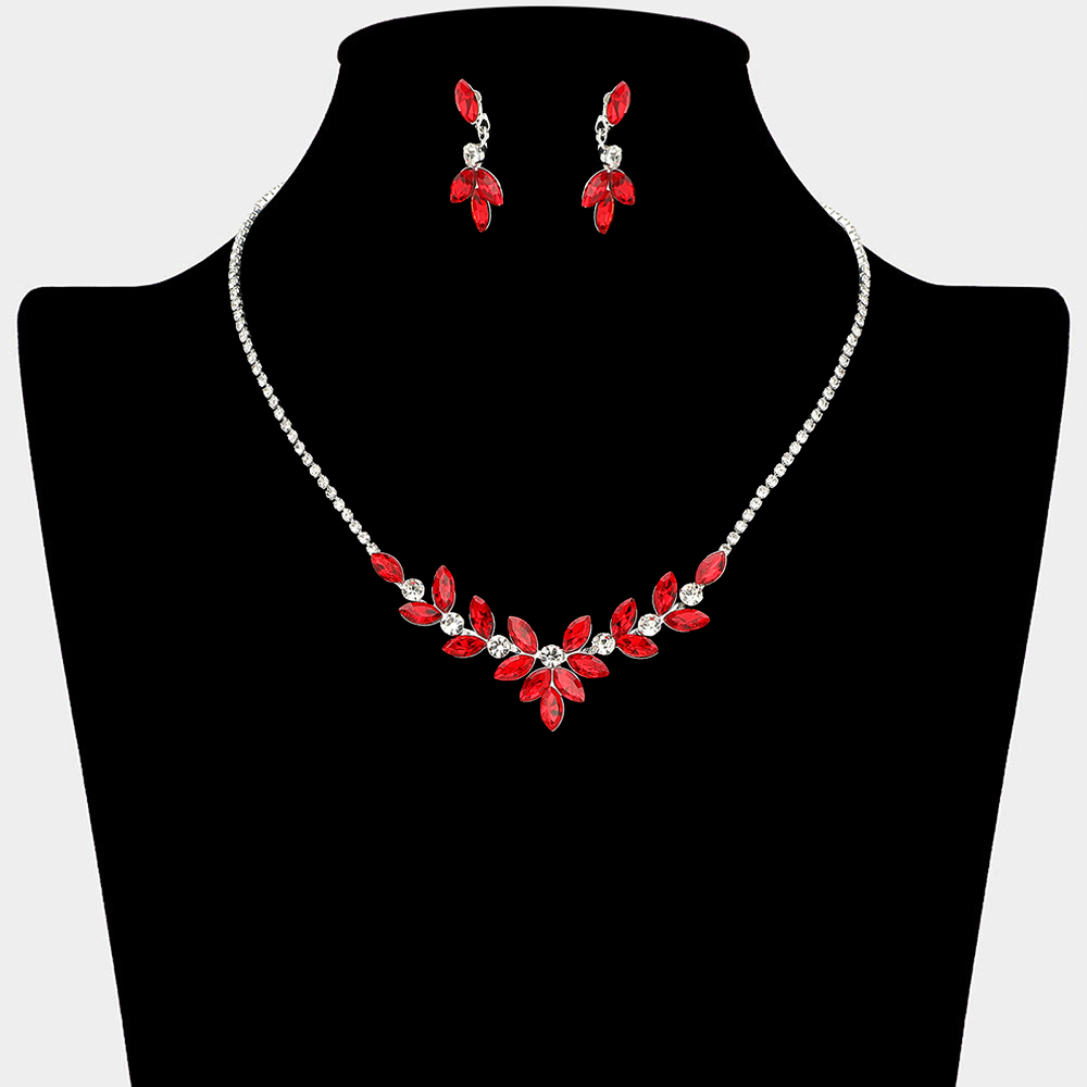 • This refined necklace and matching earring set features a leaf-inspired crystal arrangement that frames the neckline with elegant sparkle. Designed for weddings, bridal parties, formal events, and evening wear, it offers a graceful statement look that enhances dresses, gowns, and special occasion styling with timeless appeal.