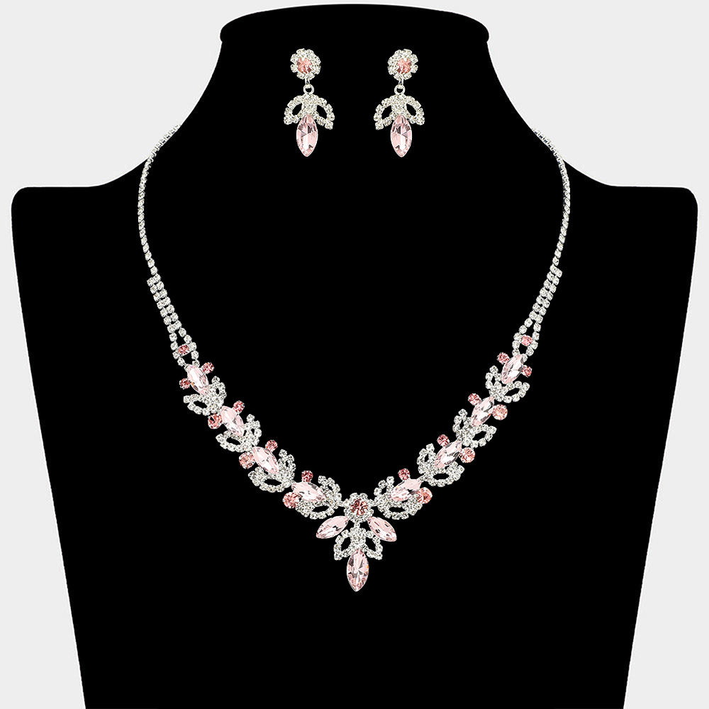 • This statement necklace and matching earring set showcases cascading leaf and drop details in a symmetrical design that frames the neckline beautifully. Ideal for weddings, formal events, evening wear, and special occasions, it delivers refined sparkle and a polished finish to elevated looks.