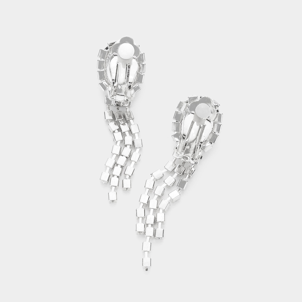 Oval Stone Accented V Shaped Rhinestone Necklace Clip on Earring Set