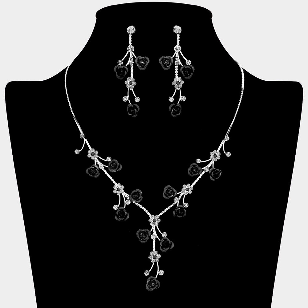 • Elevate your look with this elegant floral necklace and earring set. Featuring delicate flower accents and a graceful design, this jewelry set adds a refined charm to both special occasions and everyday wear, making it a must-have accessory for timeless sophistication.